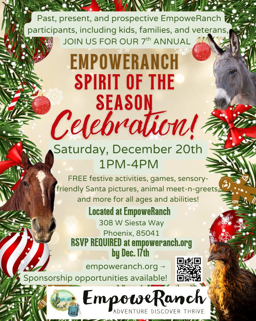 You’re invited! FREE family-friendly community event for all ages and abilities Sat, Dec 20th 1pm-4pm to spread joy and holiday cheer at EmpoweRanch!